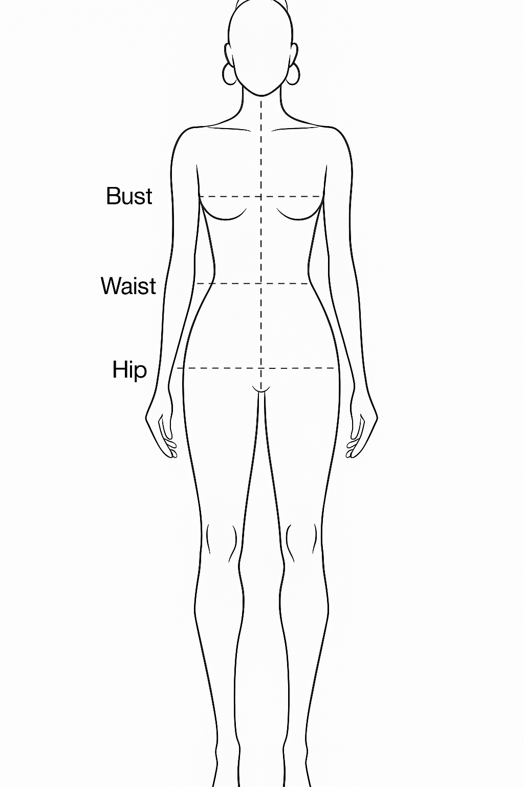 WAIST β Measure around the narrowest part of your waist, usually near your belly button.